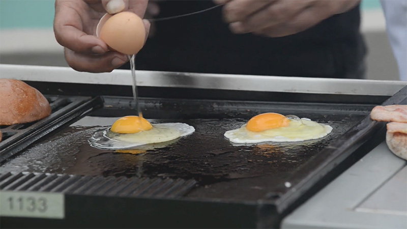 BBQ Bacon and fry egg on the hotplate.
