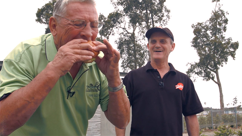 Here Dale, with his chef Johnny, have taken their skills to the Forster Tuncurry racecourse and have created a breakfast burger with a twist.