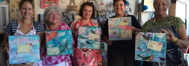 Coco’s Closet – artist in residence Kristie Banham, home to indie designs and crafts, eclectic gifts and handmade deliciousness. An afternoon of mixed media, cutting, pasting, sticking and creating. Kristie is a great teacher encouraging and helping the creative process. What a day…thanks Kristie it was good fun